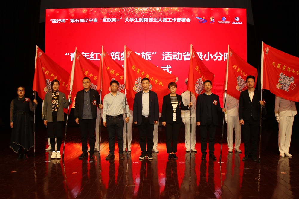 会上,李勇江为“青年红色筑梦之旅”系列实践活动小分队出征授旗,李勇江、李岩梅、董晓炜、张强、刘正江共同启动第五届辽宁省“互联网+”大学生创新创业大赛。