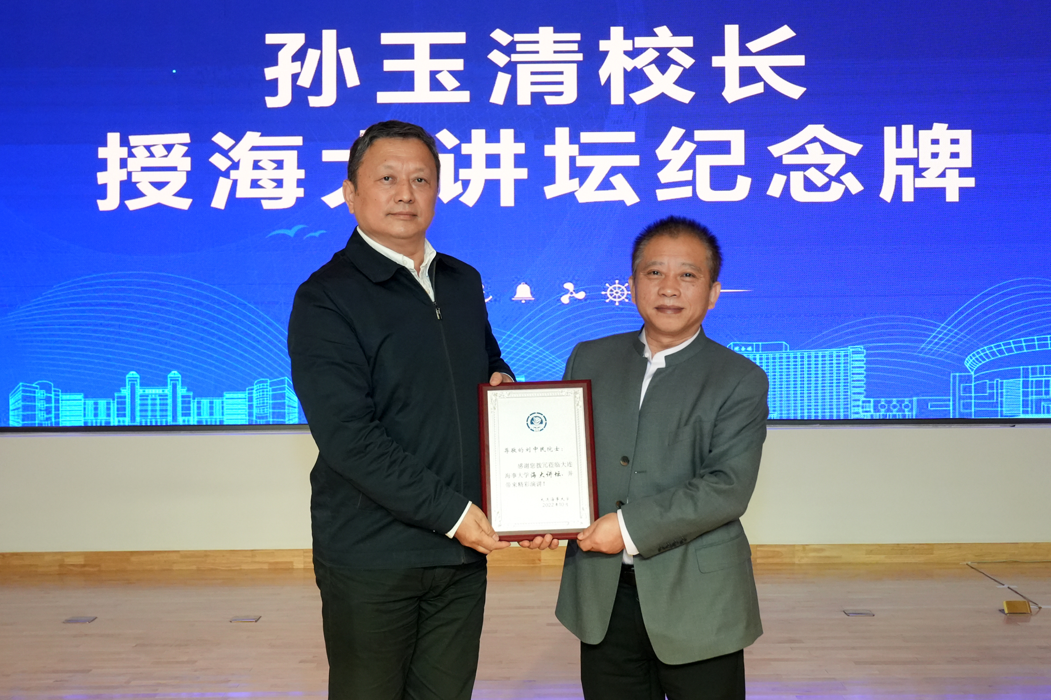 报告结束后,孙玉清代表学校向刘中民院士赠送了“海大讲坛”纪念牌。