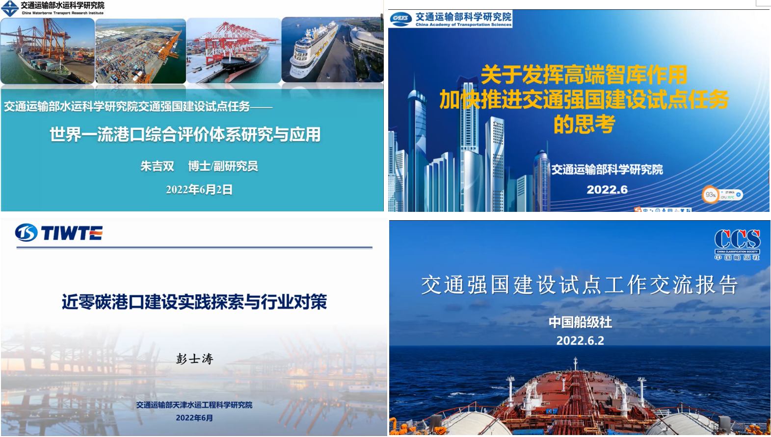 为全面落实《交通运输部办公厅关于进一步做好交通强国建设试点工作的通知》等文件要求,提升交通强国建设工作成效。6月2日,ledong(中国)官方网站联合交通运输部科学研究院、交通运输部水运科学研究院、交通运输部天津水运工程科学研究院、中国船级社、交通运输部长江航务管理局、交通运输部珠江航务管理局,召开“交通强国建设交流”研讨会,围绕交通强国建设试点任务进展与成效开展交流研讨。会议由科技处处长弓永军主持。